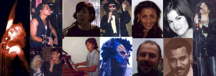 Amy Coleman is one of the best known singers, and is arguably the most amazing performer on the New York rhythm and blues scene, today. She's recorded several CD'S, has starred in numerous off Broadway shows and national tours, and regularly performs, with her own band, Flamin' Amy, at famous New York spots, like Chicago Blues. Mike Butler is in the process of recording his second CD, he's performed at numerous clubs in different parts of the world, and he can be found, every weekend, entertaining scores of Broadway professionals, regular patrons, and passing tourists and sailors, at O'Flaherty's Inn, on Restaurant Row. Angora not only has a truly exquisite singing voice, but she's also gifted with one of the most creative and original minds that I've ever come across; she's sung and written every kind of music from opera to R & B to rap. Magnet is a very talented composer, who has played the keyboards and sung with more than a few bands. Clare Cooper is a brilliant singer, songwriter and entertainer who recently released her first CD, and can be seen, every weekend, playing piano, singing and entertaining the crowds at Rose's Turn, in New York's West Village. Linda Edlund plays every instrument and sings on most of her original recordings; she's written numerous songs with me, and at least a hundred, on her own. Mad man Hymie Eingelfat was America's first Hassidic rapper, whose extensive resume is too diverse and bizarre to get into. Jumpin' Alex is a new wave singer, songwriter and musician, who just released a new CD, and whose unique style and outlandish costumes have helped make him a known fixture on the stages of New York's hottest nightclubs, as well as on the international circuit. Singer, model and MTV executive Grace Clarke could hold her own with any of the great divas of now or any other time, and is probably one of the most uplifting and beautiful people I've ever worked with. Mike Boldt has collaborated with me on a half dozen songs; besides playing every instrument on his many original recordings, Mike's done the design and photography work for numerous published books, he's written and performed the soundtracks for several feature films, and he recently scored the music for the video release of a restored D.W. Griffith silent classic. Marleah Martin has a singing voice that would make the angels stop and listen; she's recently out of college, new to New York, and destined to be make a significant mark in the world of musical theatre; remember where you heard that. Gregory Rahming is an accomplished international opera and gospel singer, who's headlined in all the big rooms, like Carnegie Hall, and who was prominently featured in the recent Broadway revival of ON THE TOWN. And Mike Messer always seems to be working on eight different things; in the few years that we've been in close contact, he's starred in at least twenty off Broadway and regional musicals and plays, he played the leading role of Berger in the thirtieth anniversary international tour of HAIR, and he was one of the principle performers in the recent star studded British Rock Symphony Concert.