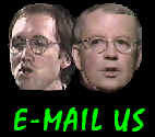 For those who, for whatever reason, can't hear our voices on their computers, we offer this page as a semi-viable alternative. If you click on the faces below, you'll see some interesting and unique production pictures, and you'll experience the same pieces of the play that you'd hear in the clips. You just won't be able to appreciate the dead on and often hilarious interpretations of our truly brilliant actors. Look at the captions, read the dialogue, try to imagine the best and funniest impressions that you've ever heard of the actual people, and you're most of the way there. Some of the clips are intended for seasoned audiences, and parental discretion is strongly suggested!