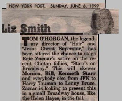 On June 6, 199, Liz Smith talked about Starr's on Broadway in her nationally syndicated column. Not only was this bit in the New York Post and New York Newsday, it was also in dozens of other newspapers, all around the United States.